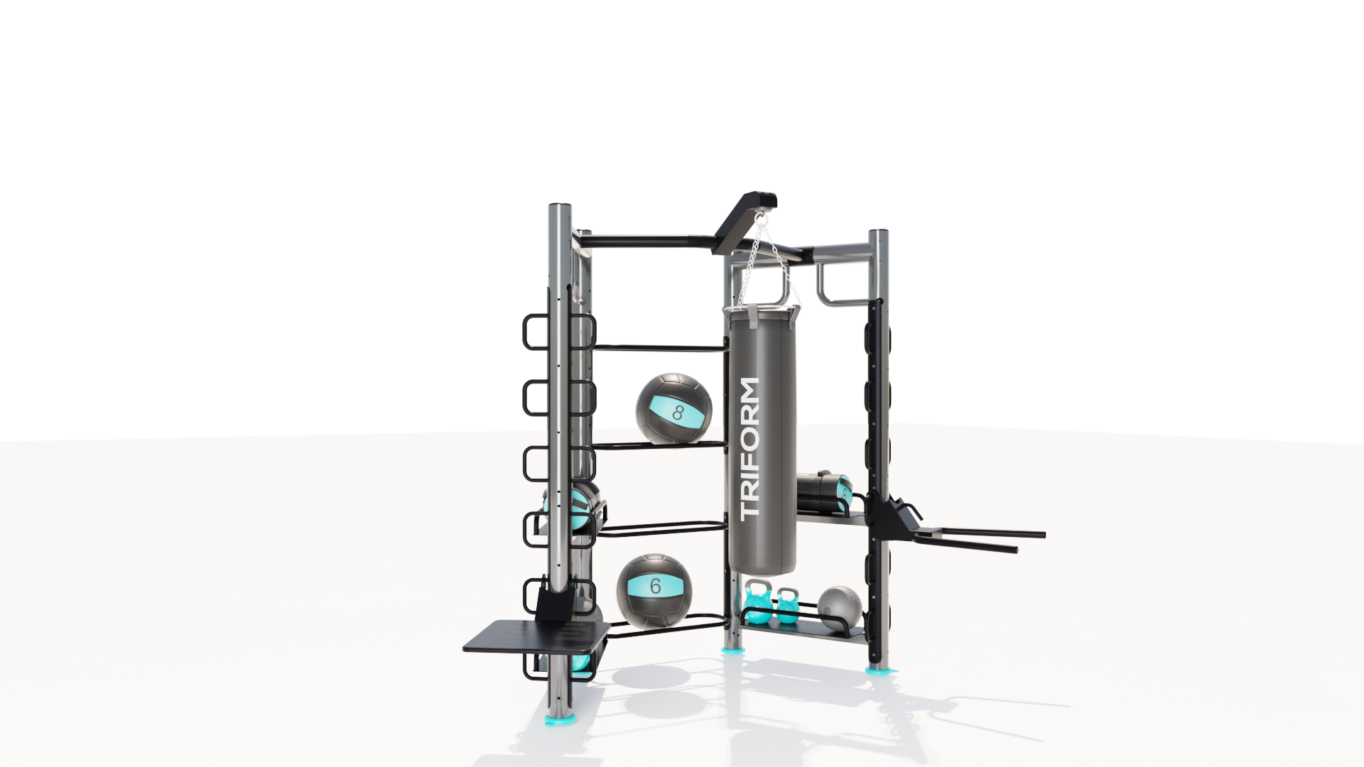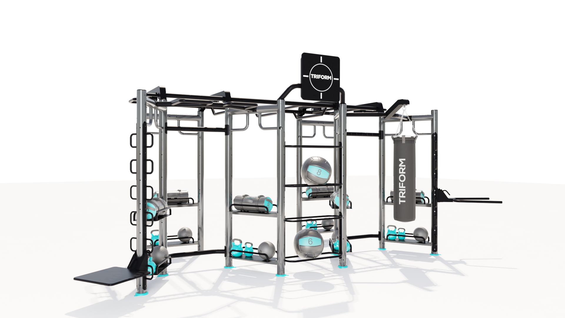 The Mini-Station version with punching bag is the TRIFORM functional station designed by our technicians, fully modular.