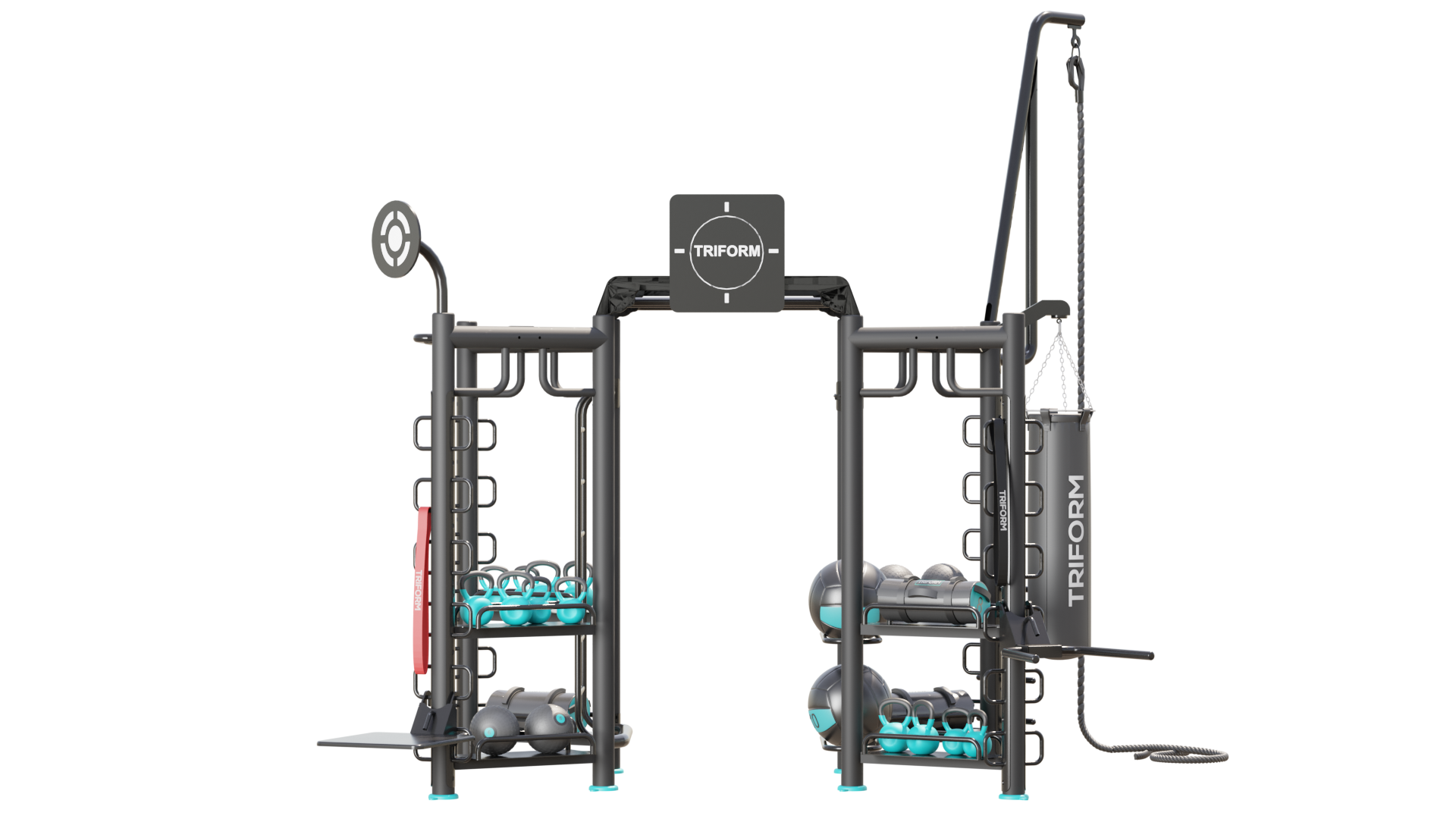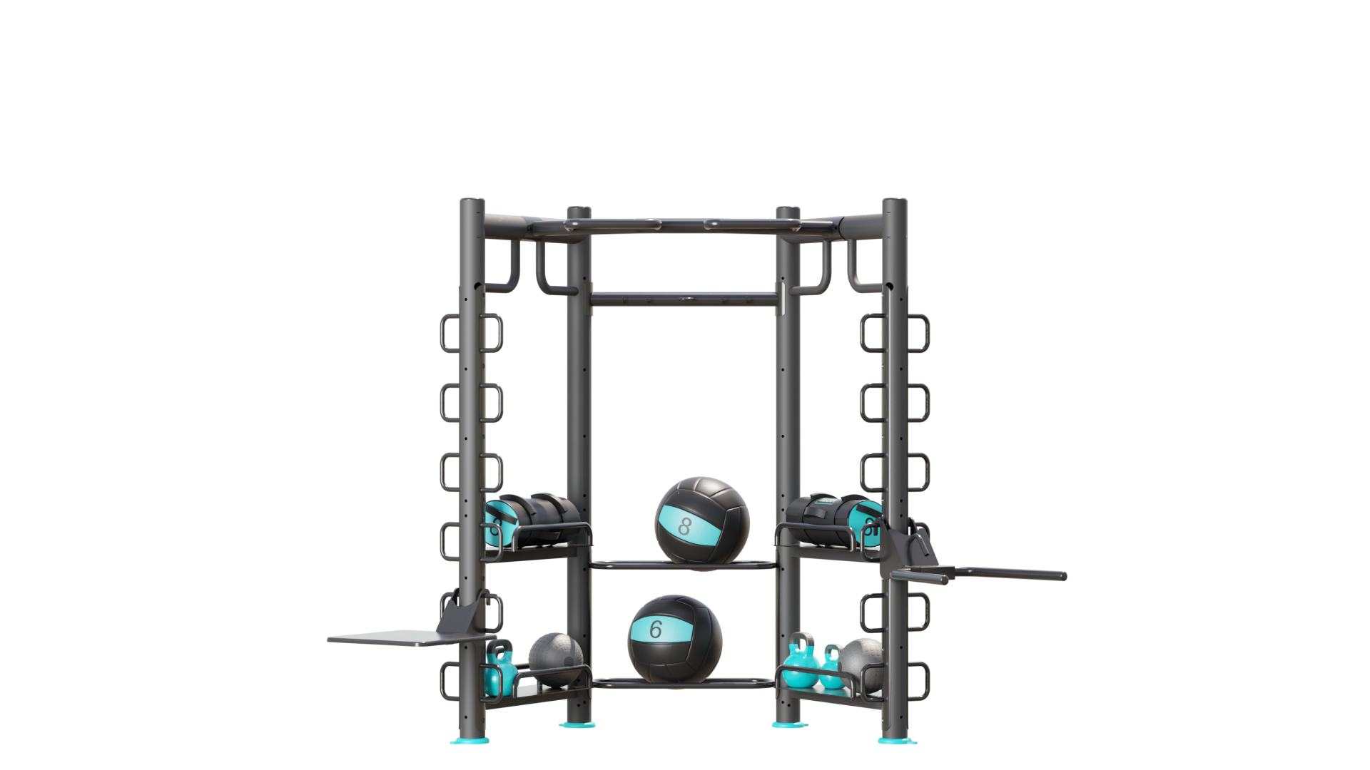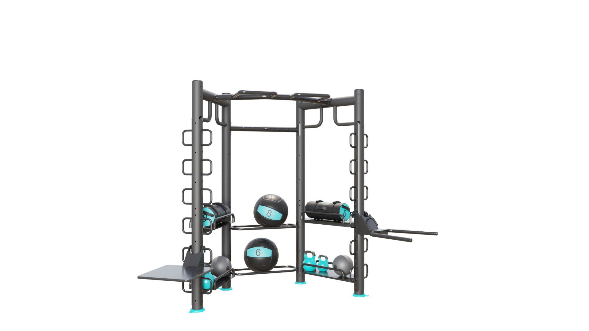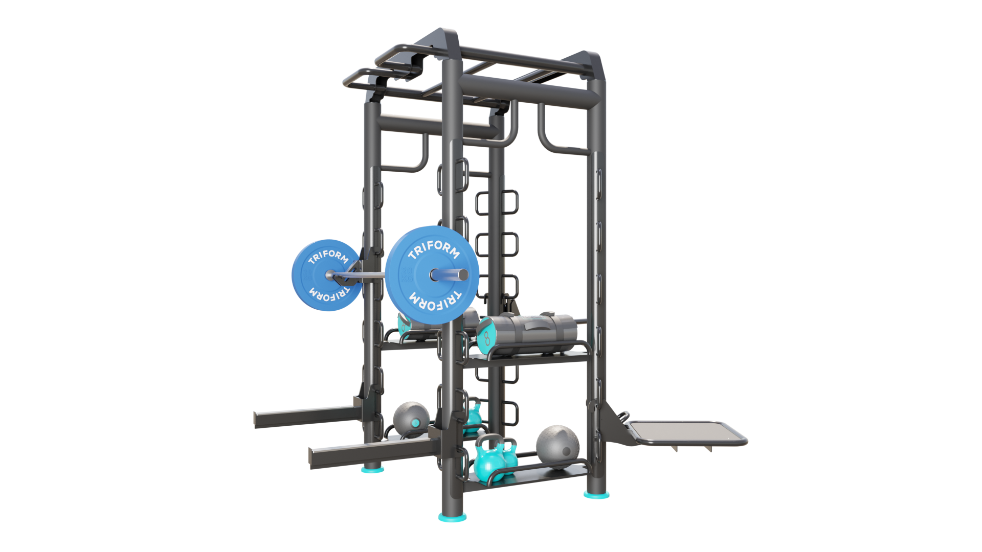 COMBO 8 TRIFORM è una sala functional completa costituita dalla combinazione tra diverse TRIFORM Station: 1 X-STATION + 2 MINI CASTLE LATERALI + 1 SUSPENSION BRIDGE + RACK BILANCIERI.