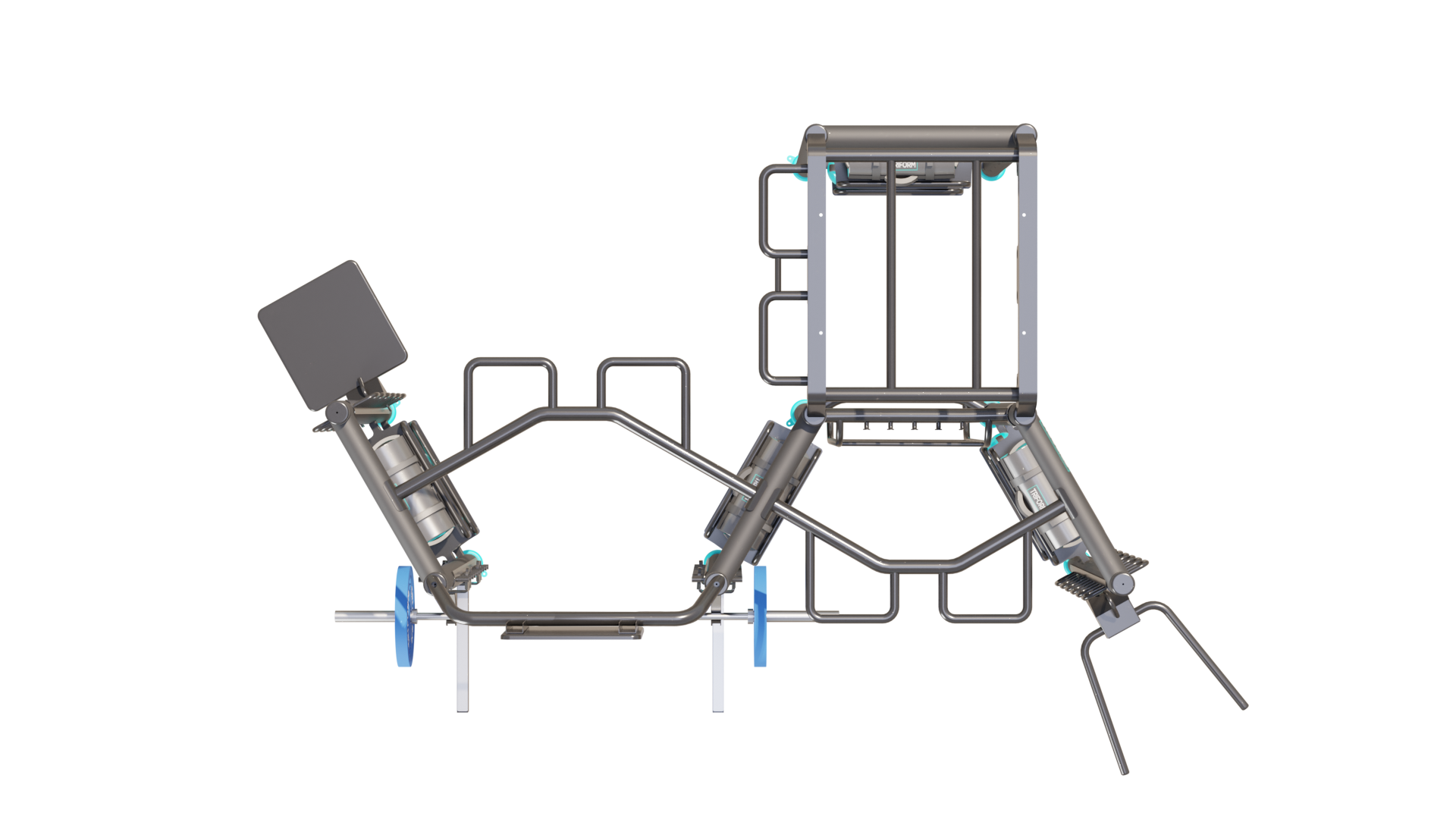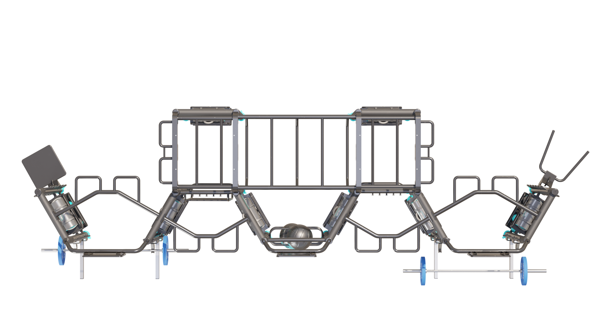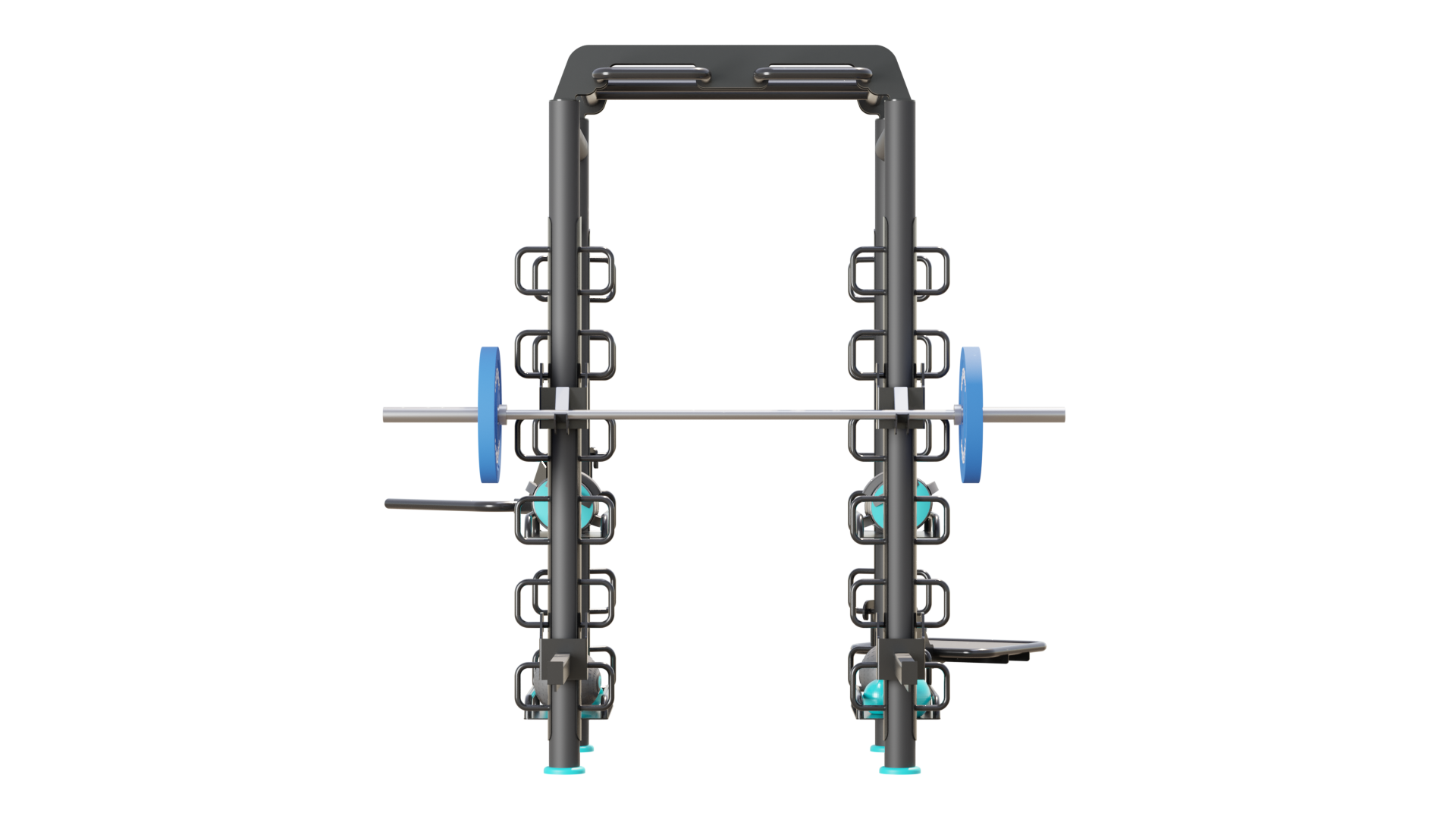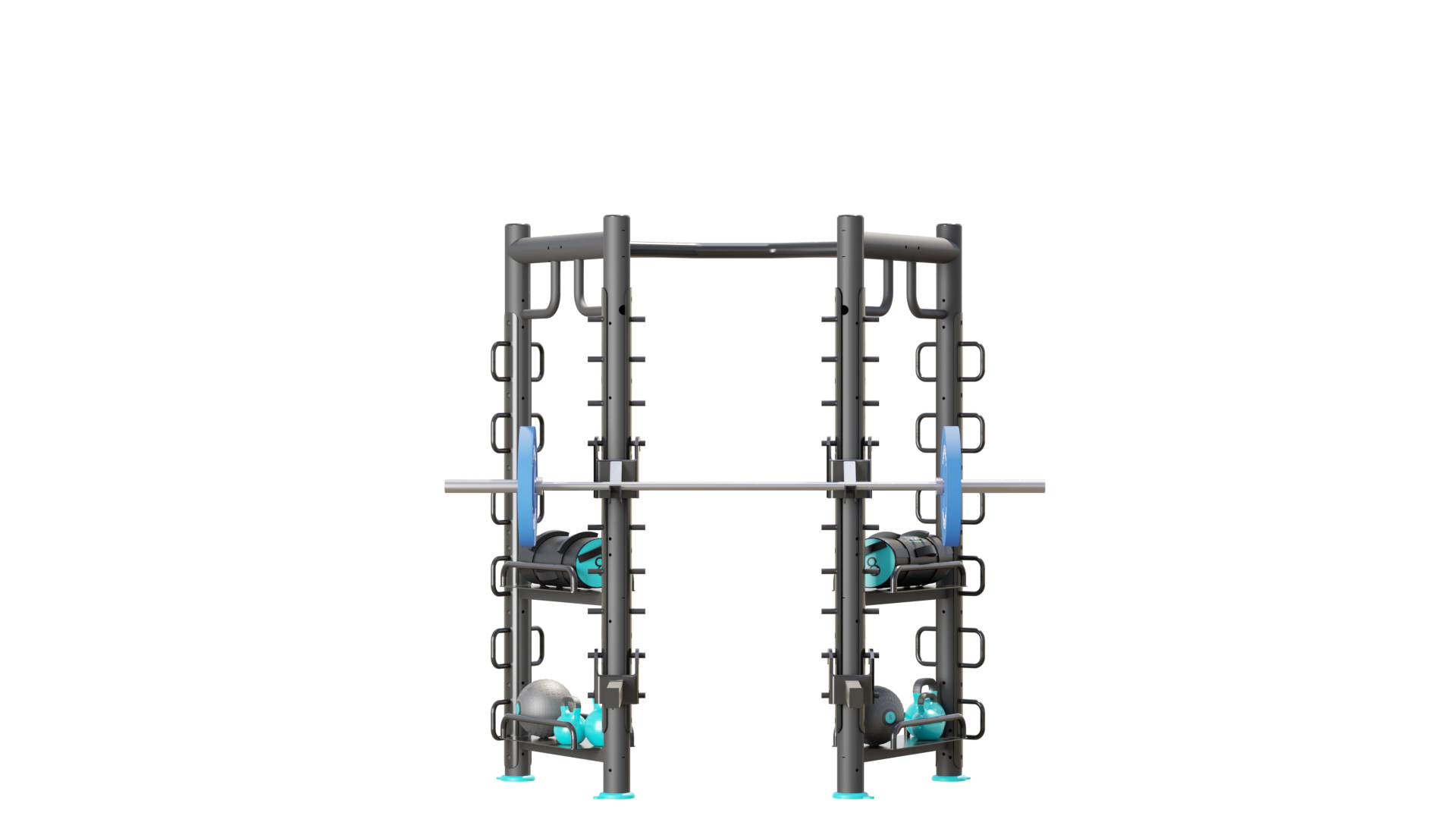 S-STATION in versione rack è un circuito funzionale completo in soli 3,5 mq che permette un total function training di gruppo con 6 postazioni complessive provvisto di bilanciere.